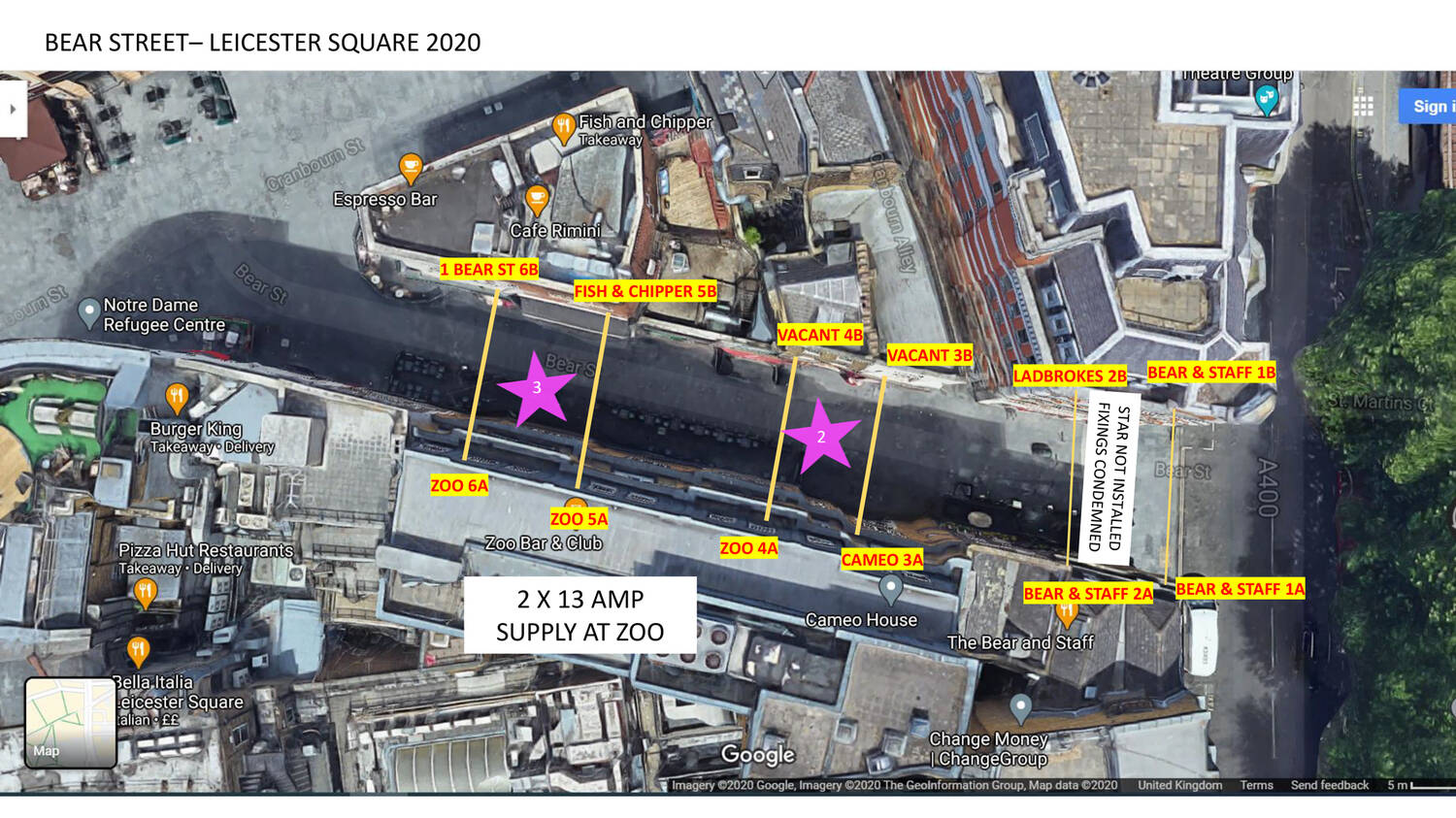 Below is a plan of the eye bolts along the street: