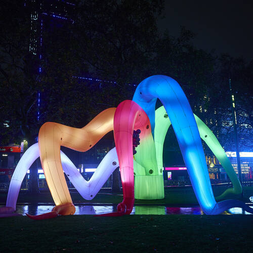 'The Cornucopia' is a striking, brightly-coloured masterpiece that will stand tall towering above Leicester Square Gardens. This awe-inspiring creation embodies the spirit of growth, beauty, and the lively energy of the West End, blossoming from the ground in a mythical form.