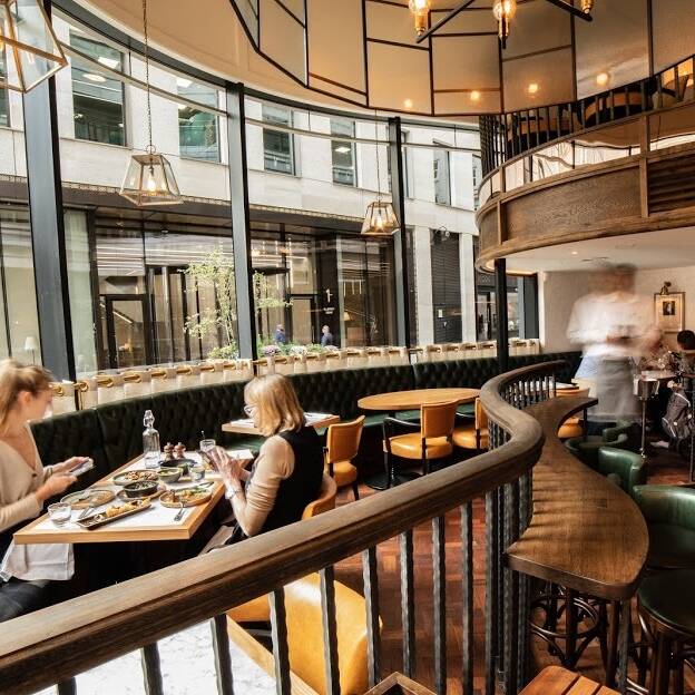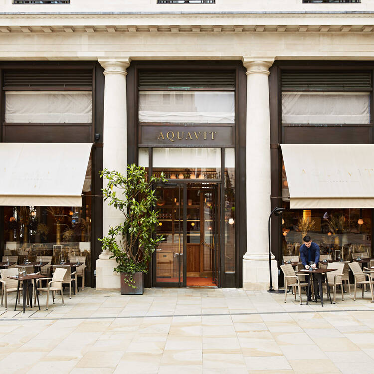 Aquavit is a stylish Scandinavian restaurant in London's St James area. With a chic and modern atmosphere, it's perfect for romantic nights or special occasions. It offers a blend of classic Nordic dishes and contemporary flavours. The menu features fresh, seasonal ingredients including Gravlax, Toast Skagen, Braised Pork Belly, Roast Cod, and vegetarian options like Jerusalem Artichoke. Aquavit also has a great selection of Scandinavian-inspired cocktails, wines, and beers, including their namesake drink.
