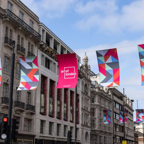 As part of the Art of London Season, we collaborated with the Royal Academy of Arts and talented artist Rana Begum RA to create a lively display of public artwork in Piccadilly. You can enjoy these colourful and vibrant flags in the London skies from 30th May to 20th August 2023.