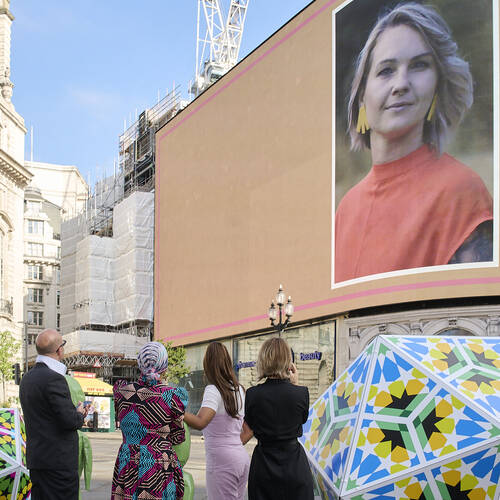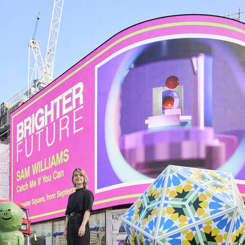 Sam creates immersive environments through her work, encouraging people to ‘find their play’. Williams’ lively creation entitled 'Catch Me If You Can' draws on her childhood experience of growing up in a theme park and uses colourful patterns that encourage people to experience the world through a new lens, enhanced with a fun augmented reality game.