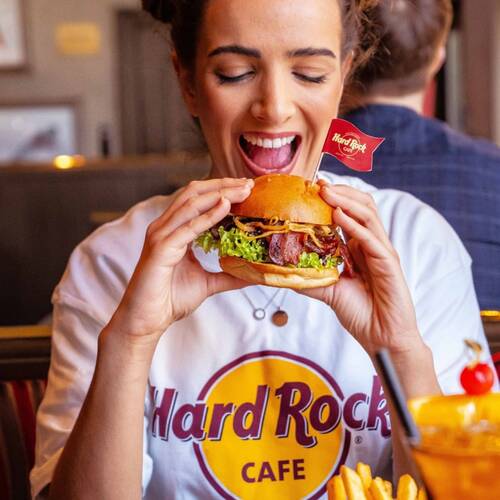 Hard Rock Cafe's food is nothing short of excellence. Indulge in favourites like the Original Legendary Burger®, the delicious Moving Mountains® Burger, the spicy One Night In Bangkok Shrimp, the mouthwatering Apple Cobbler, and much more. They also offer specialities like their Famous Fajitas and classic BBQ Pork Ribs – they are a real treat!