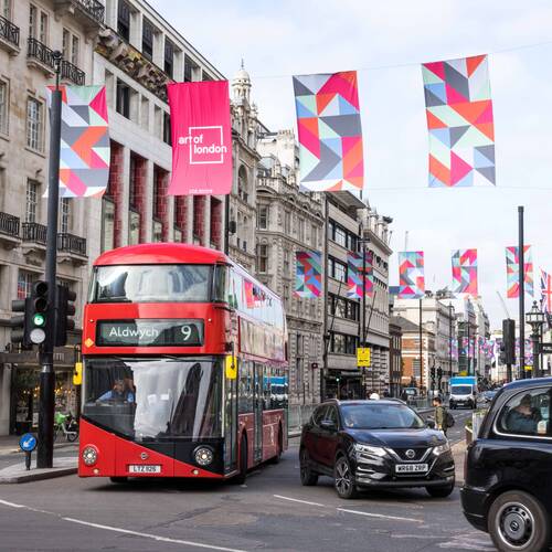 Head to Piccadilly and let the flags take you on a journey of creativity and inspiration.
