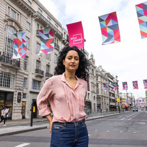 Inspired by the theme 'The Art of Entertainment' for Art of London's 2023 Season, Rana Begum crafted extraordinary flags boasting intricate geometric patterns, celebrating the rich tapestry of cultures in our city. As a distinguished Royal Academician, her meticulously tiled mosaic designs symbolise unity and the diversity that makes London so special.