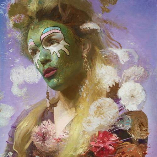 But what truly sets St. John apart is his unique fusion of the classical and the contemporary. His canvases burst to life as he paints Drag Queens and Trans models with antique porcelain figurines and trinkets. It's a symphony of old and new, all painted with his skilful hand.