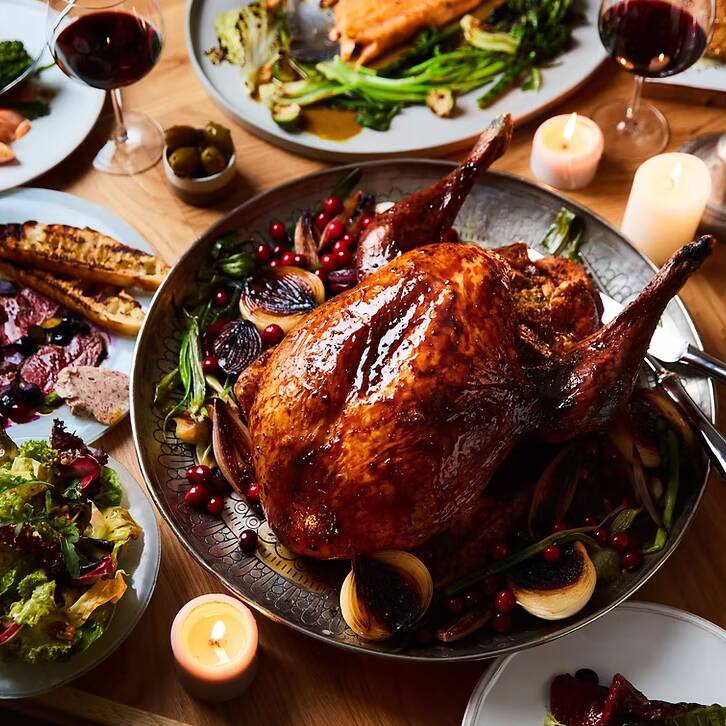 Sharing plates form the centrepiece of the evening, from smoked turkey with freekeh and dried blueberries to smoked salmon with seasonal greens and ras-el-hanout butter sauce. For those seeking something more indulgent, options include sirloin on the bone with grilled pickled red cabbage and bone marrow, tuna crudo with caviar and blood orange vinaigrette, and beef tataki with cranberry and pickled red onion salsa.