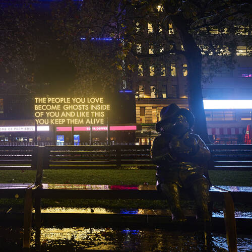 Additionally, in Leicester Square Gardens, you can admire an illuminated neon installation by MTArt poetic artist Robert Montgomery. His work fuses art and design into a poem titled 'The People You Love.' Born in Scotland in 1972, Montgomery is renowned for his light installations in European cities, including Berlin, London, Paris, Athens, and more. His art has been displayed worldwide, including at the Aspen Art Museum and the Oklahoma Contemporary Arts Center in the USA. His work is also part of the permanent collections at the Houston Museum of Fine Arts and the Albright Knox Museum.