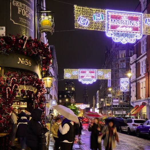 Theatreland has been marked with a new set of lights this Christmas, as St Martin's Lane is decked out in a festive first with a set of theatrical Christmas lights. Sandwiched in amongst some of London's famed theatres - The Duke of York, Noel Coward and Wyndham's Theatre, these lights take inspiration from the flair of the stage donning a display of eight million Christmas lights, St Martin's Lane is a-glow from 3.30pm-11pm every day.
