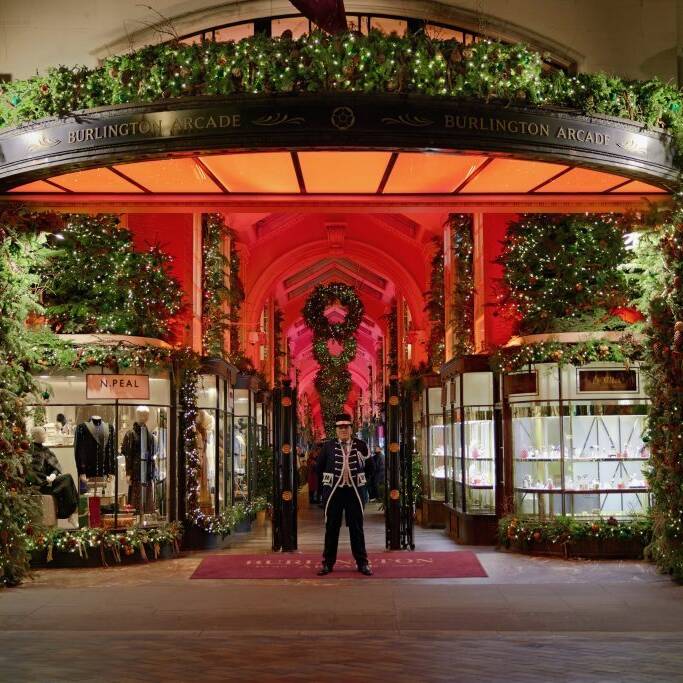 This historic shopping arcade offers a timeless festive experience. The ceiling sparkles with cascading lights, and the elegant storefronts showcase festive displays featuring high-end jewellery, accessories, and gifts. A leisurely walk, through Burlington Arcade feels like stepping into a Christmas postcard.