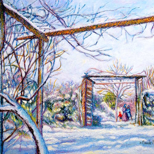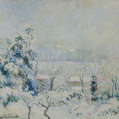See Orovida Pissarro’s Winter (The Skaters), Georges Manzana Pissarro’s Vue de la Fenêtre de l'Artiste Menton Carei sous la Neige, and H. Claude Pissarro’s Neige à Grandcamp, together portraying a snowscape-inspired window display. Plus, once inside see a rare feature piece by Impressionist artist Camille Pissarro.
