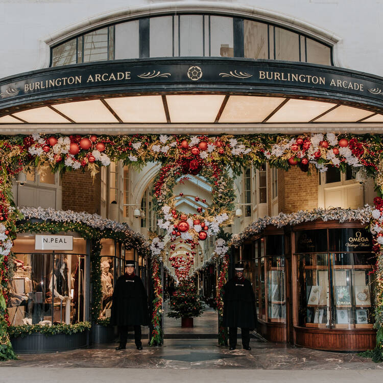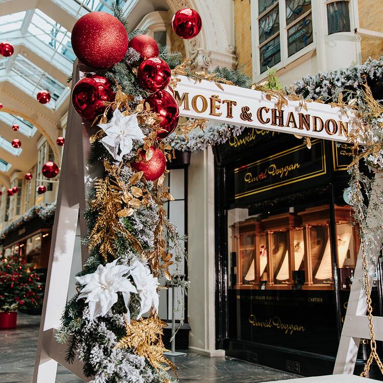 The Beadles are back at the Burlington Arcade and welcoming visitors with a full-on festive display. See frosted foliage, sparkling fairy lights and a special Moet Hennessy swing, alongside real Christmas trees filled with red, white and gold embellishments.