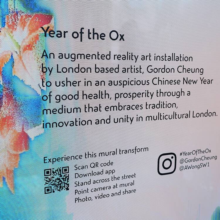 In partnership with Rémy Martin, the public artwork will take the form of a vinyl mural wrapped around the restaurant’s newly installed terrace, to be enjoyed by everyone. In addition, it can be enjoyed further through a “Year of the Ox” app on Android or Apple smartphone, accessed via a QR code located on the work. This will bring the art to life in digital animation: beautiful flowers will grow and the mural with the ox will glisten and transform.
