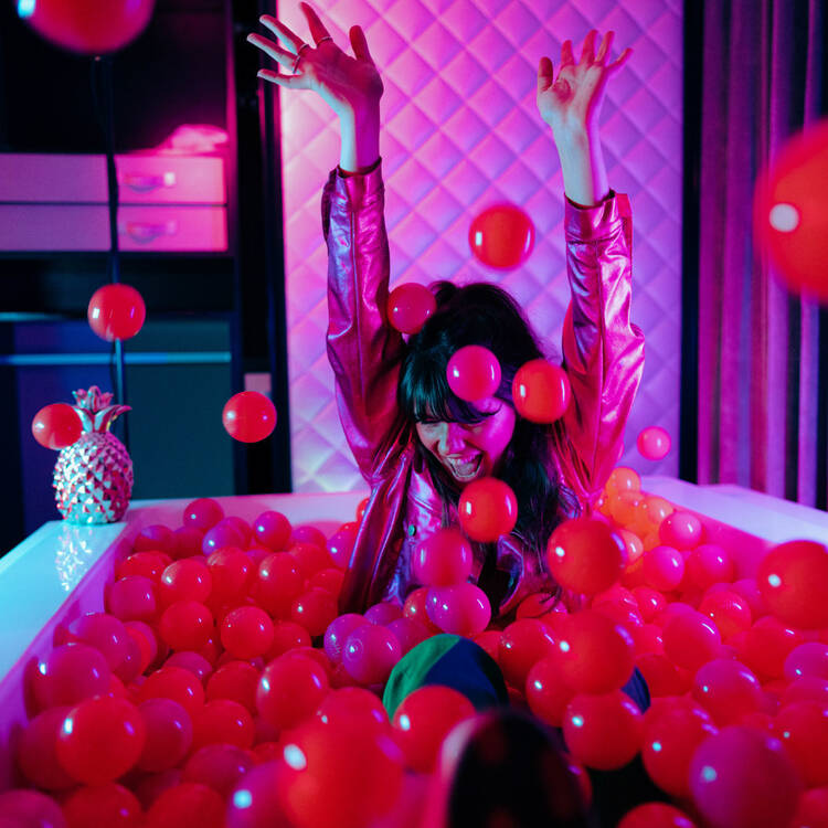 Advena (2021) is a VR resort and immersive installation that responds to our insatiable desire for escapism during the pandemic - providing the viewer an idyllic landscape of tropical fauna, pink doughnuts, colourful architecture, opalescent orbs and warm beaches. Though there is also an uncomfortable undertone to the island, exploring the ecological and social impact of tourism and its corresponding resort culture, questioning the effect social media has had on the way we travel and what influences us.