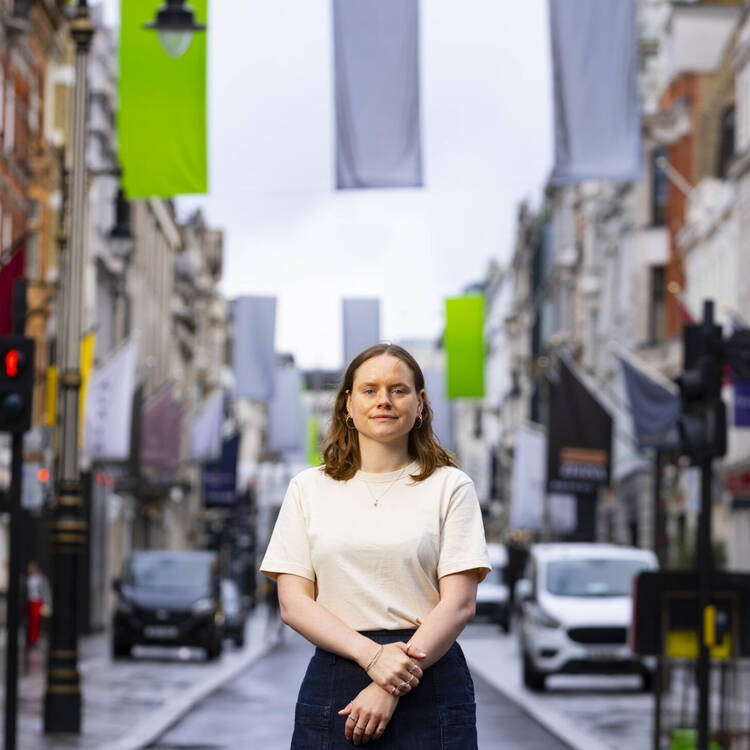 In parallel, RA Schools student Lizzie Munn has created striking flag designs for Bond Street, Mayfair. Her work, entitled ‘The Sun Speaks,’ is on display from 10 June to 7 July. Munn’s large-scale print-based installations, shaped by their environment, are a highlight of this year’s Art in Mayfair campaign, which recognises emerging talent in the art world. Munn will also present her works at the RA Schools Show 2024, open from 14 June to 30 June 2024.