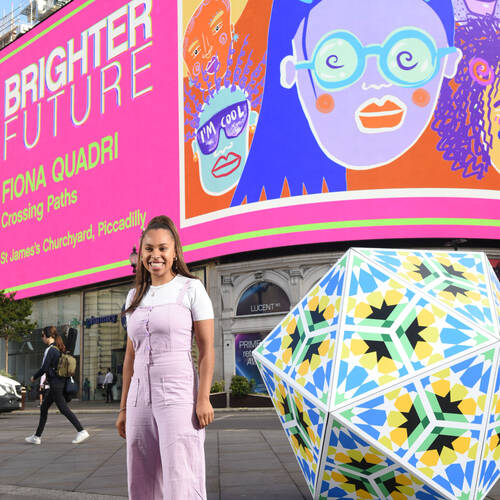 Art of London and National Gallery X challenged artists to express their creative vision of London's 'Brighter Future' by transforming the streets with vibrant, optimistic artworks. The winning artists Fiona Quadri, Sam Williams and Zarah Hussain had their artworks displayed across the West End in the summer of 2022.