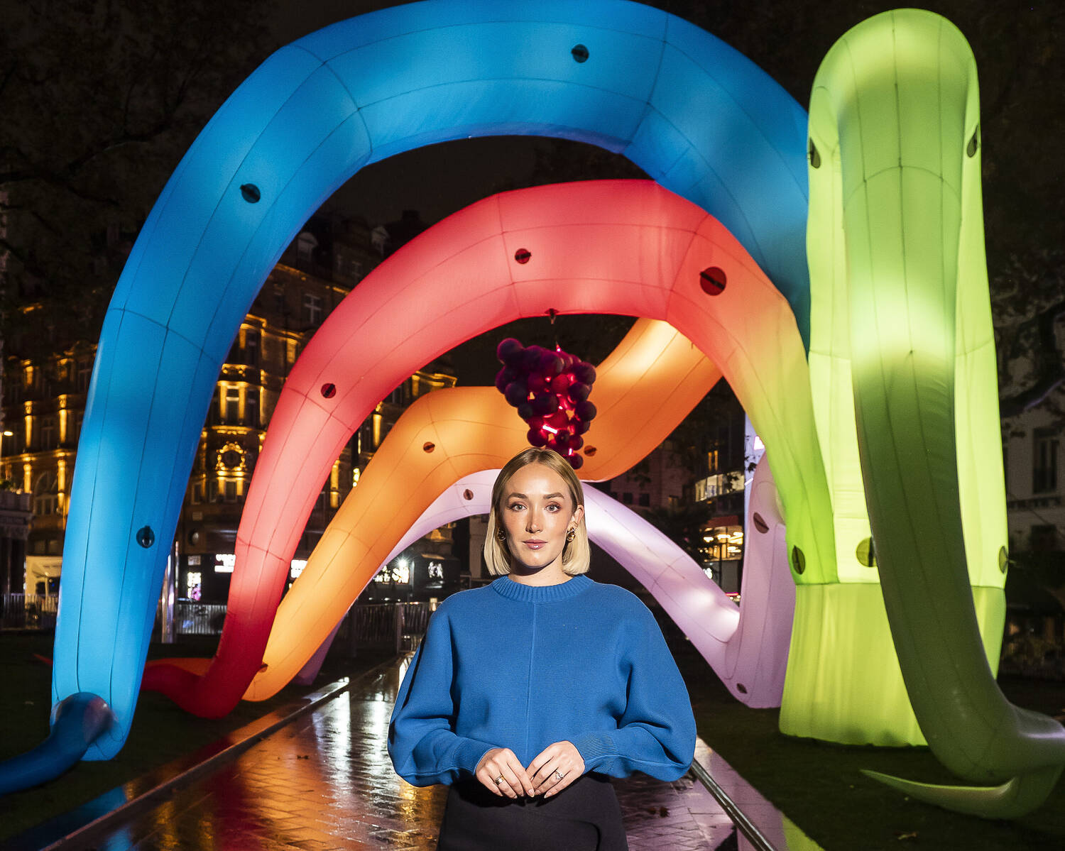 Inflatable immersive sculpture 'The Cornucopia’ was brought to life by British contemporary MTArt artist Claire Luxton for Art After Dark in October. Known for her expertise in installations, photography, and poetry, Luxton drew inspiration from nature, exploring the connection between humanity and the natural world.