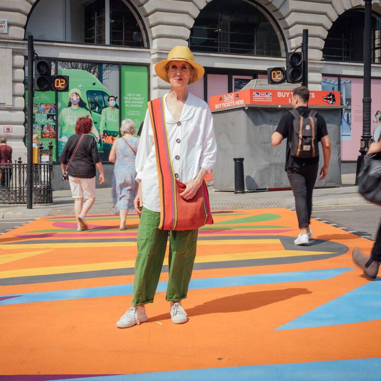For the very first Art of London Season in 2021, Art of London worked with the Royal Academy of Arts to turn Piccadilly into a canvas of colour. Painter, Vanessa Jackson RA created a series of striking crossings named UpTownDancing which saw 13 pedestrian crossings transformed into vibrant artworks transforming the area in an explosion of colour echoing Vanessa's distinctive abstract collage style. Accompanying the crossings, flags by three Royal Academicians including internationally acclaimed architect, Farshid Moussavi adorned the skies of Piccadilly.