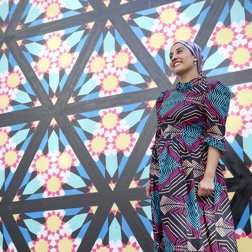 Artist Zarah Hussain combined contemporary digital art with hand-drawn Islamic geometry. Zarah created beautiful, hand-drawn kaleidoscopic patterns on two giant icosahedron (20 sided) shapes plus an eye-catching wall mural and patterned flower gardens. Entitled ‘Pop Geometry’, Zarah Hussain’s striking and vibrant colours showcased London’s cultural uniqueness.