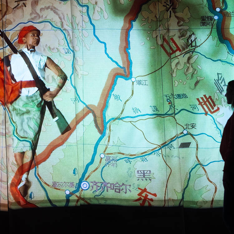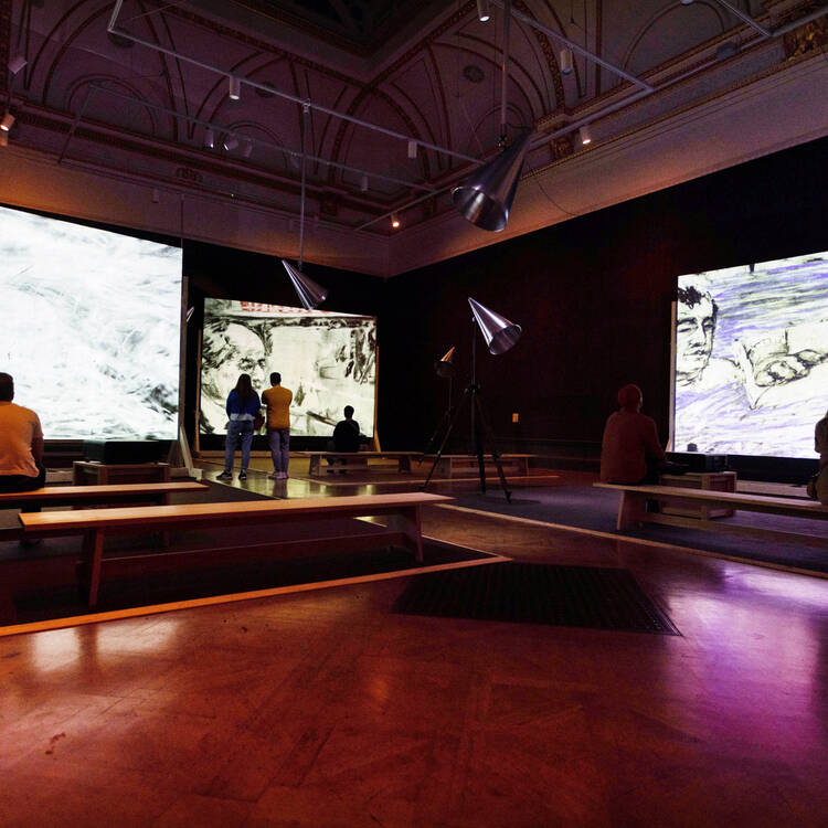 Gallery view of the William Kentridge exhibition at the Royal Academy of Arts, London, from 24 September - 11 December 2022, showing Action, 2019. Loan courtesy William Kentridge Studio, Johannesburg. © William Kentridge. Photo: © Royal Academy of Arts, London / David Parry