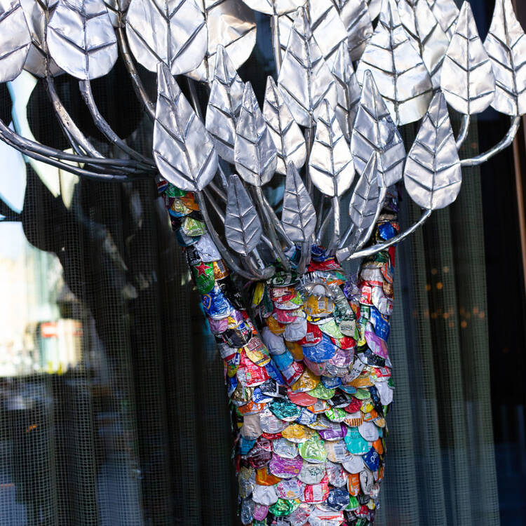 I’m an artist specialising in sculpture which utilises waste materials. My works are purposefully accessible, designed to animate public spaces and raise awareness of issues such as plastic pollution and climate change.